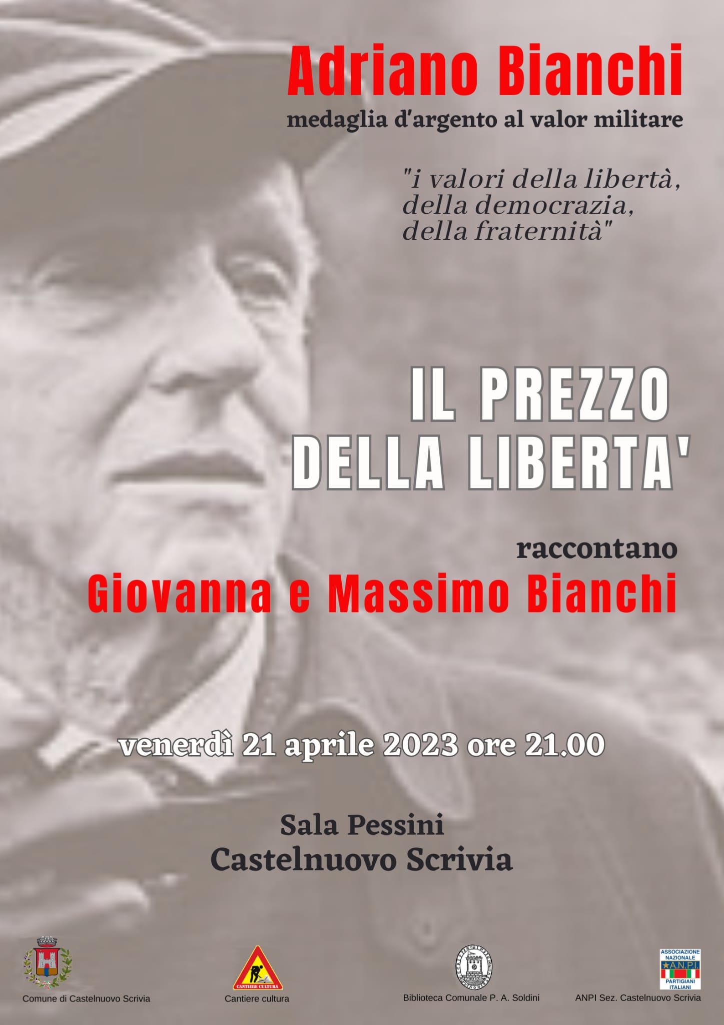 • 21 aprile, Sala Pessini, ore 21,00: serata dedicata al ricordo della figura di Adriano Bianchi, medaglia d’argento al valor militare