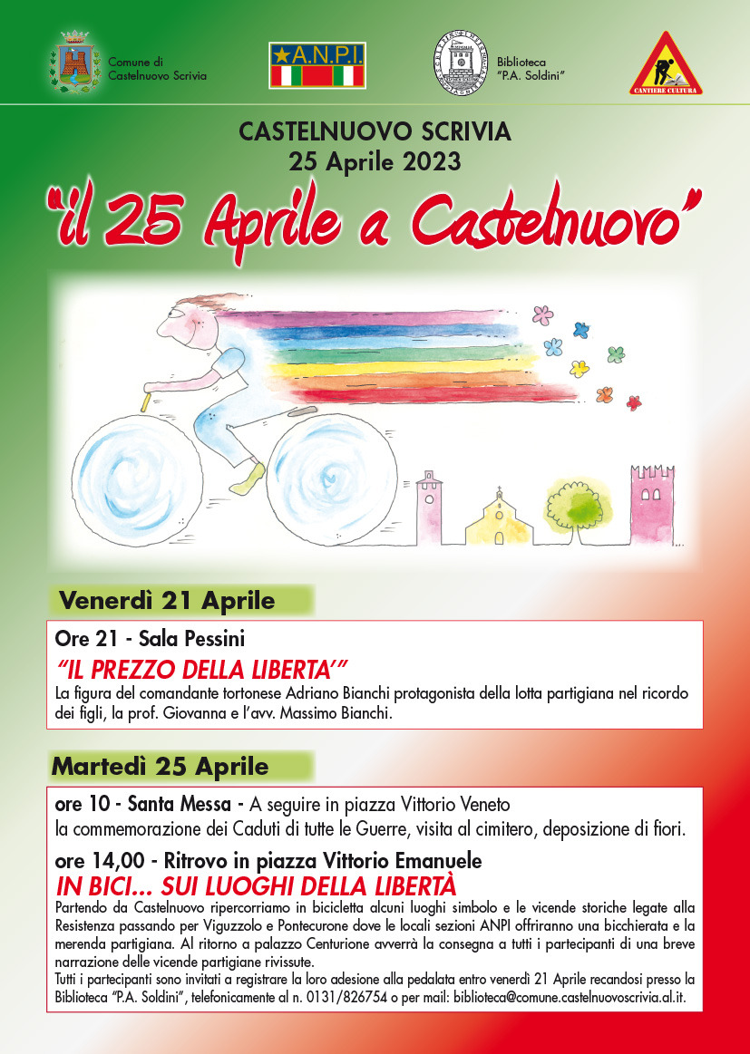 Il Comune di Castelnuovo Scrivia, il Cantiere Cultura, la Biblioteca P.A. Soldini e l’ANPI di Castelnuovo Scrivia-Sale hanno promosso i seguenti eventi: